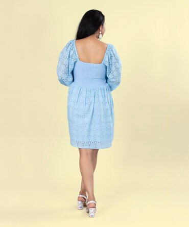 Eyelet Cap Sleeve Cotton Dress with Back Smocking