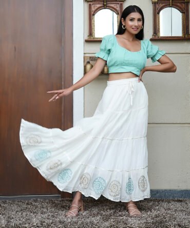 Select options This product has multiple variants. The options may be chosen on the product page Quick ViewSkirtsCotton Voile Skirt / Lining With Block Print On Bottom Tier With Zari Lace