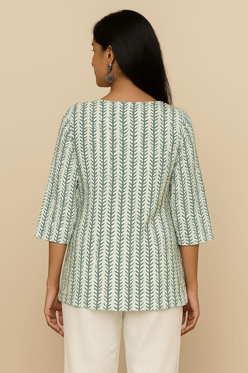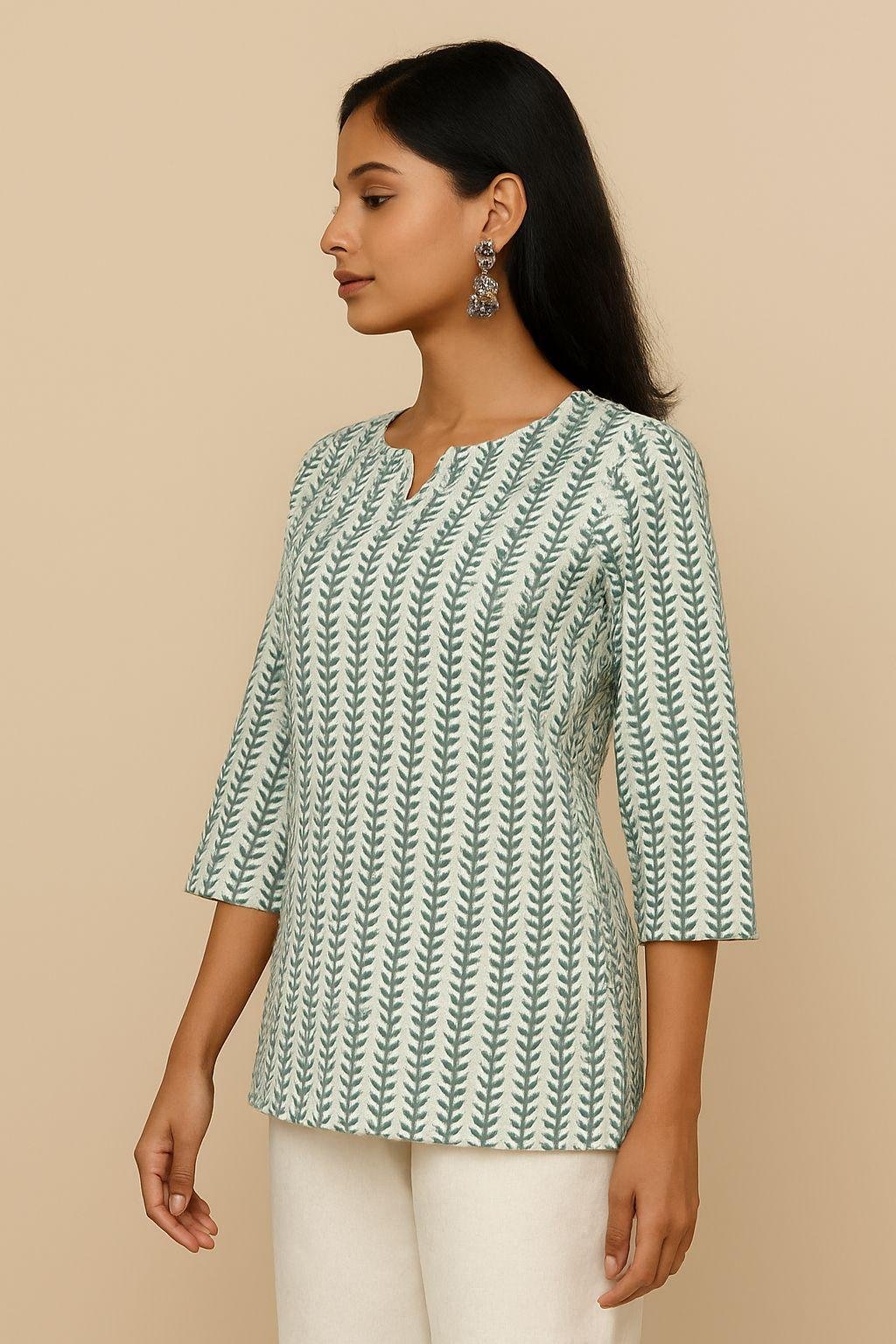 The boho-chic vibe and minimal design make it a versatile pick for any day — from work-from-home mornings to casual brunches and easy weekend getaways. The notched neckline and ¾ sleeves enhance movement and comfort, while the lightweight cotton ensures you stay cool and at ease all day.
