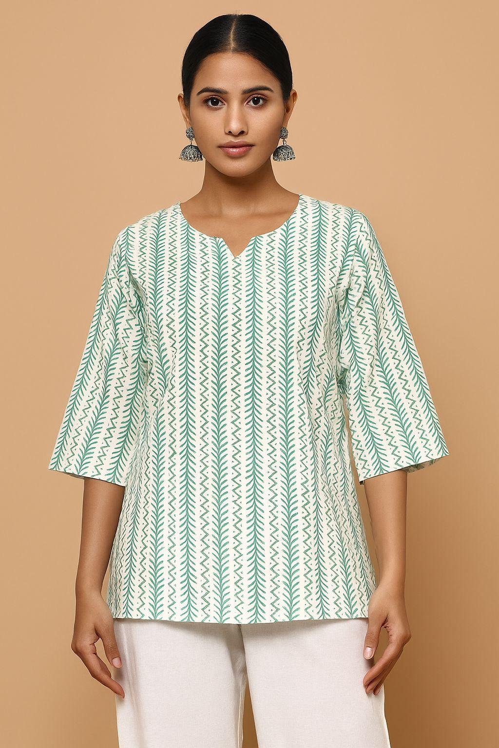 Pair it with white linen pants, juttis, or oxidized silver earrings for a clean, modern Indian look that transitions effortlessly from home to outdoors.